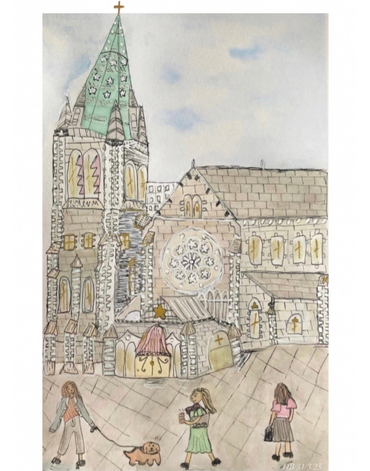 This is Dana's depiction of the beloved and iconic "Christ Church Cathedral", as it was once standing, prior to the destructive 2011 earthquake in Ōtautahi Christchurch.