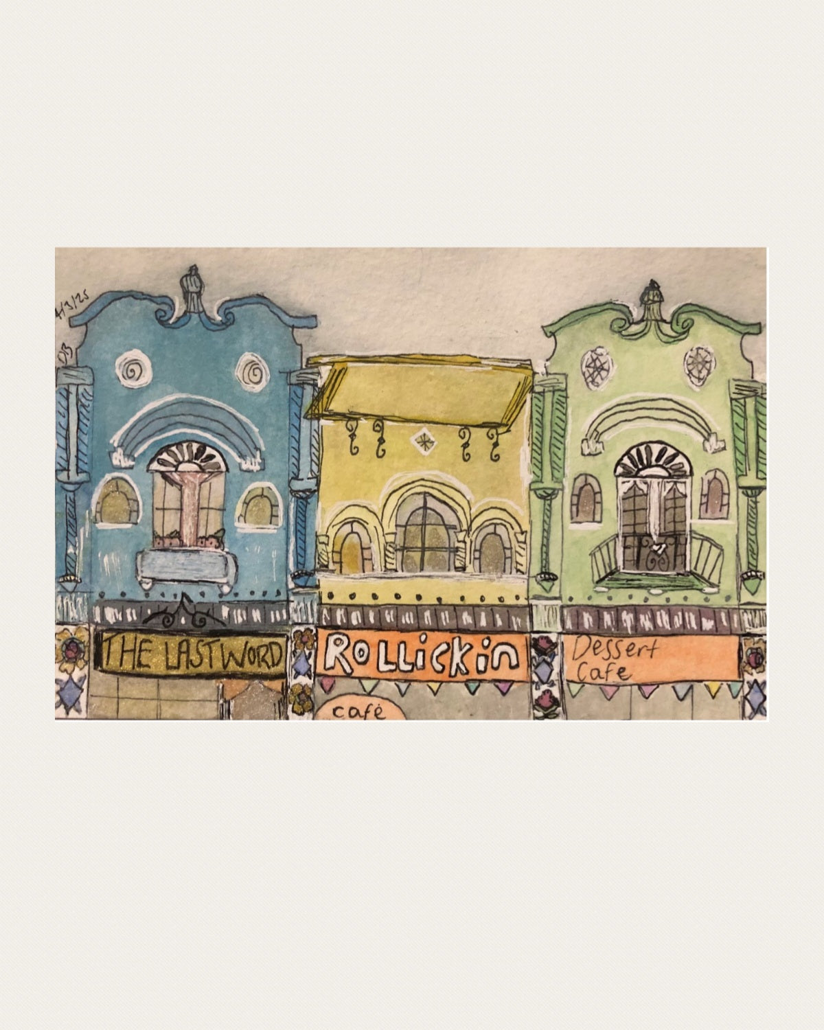 This is Dana's depiction of the iconic Christchurch precinct, New Regent Street.