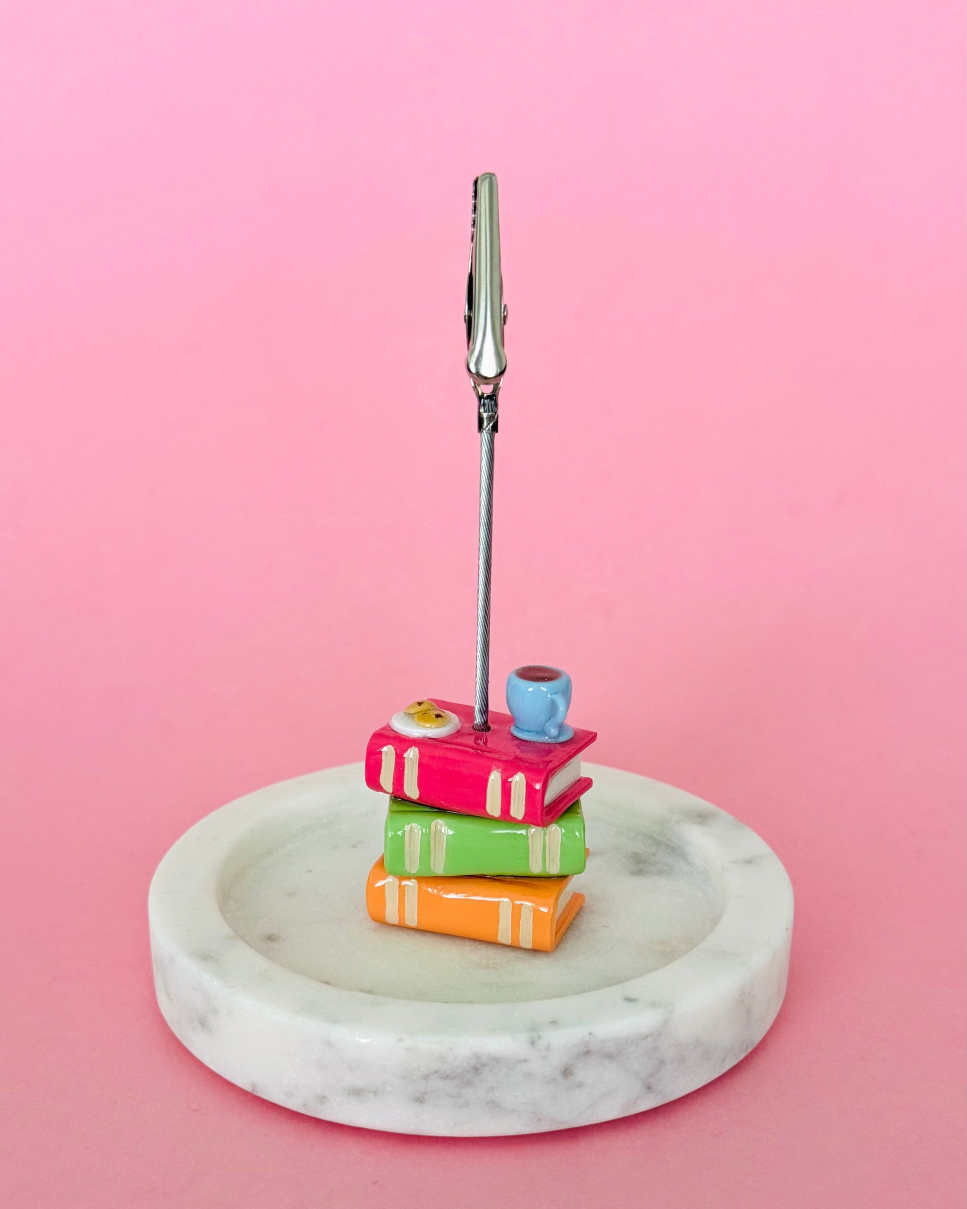 These charming photo holder features a miniature stack of books, croissant, cookie and tea or coffee made from polymer clay. Perfect for displaying your favorite photo, note or tiny reminder. Choose from large or small sizes (this listing is for one photo holder).