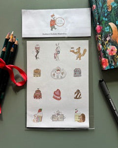 Watercolour artist Kathleen Richens has produced her illustrations as stickers. Each sticker sheet has 12 circular stickers, 4.5 cm across with a whimsical character or scene. Kathleen’s New Zealand Bird range is also available as a sticker sheet. Easy to peel, these sticker sheets are delightful for young and old, perfect for gifting, decorating items, scrapbooking, rewards and more!