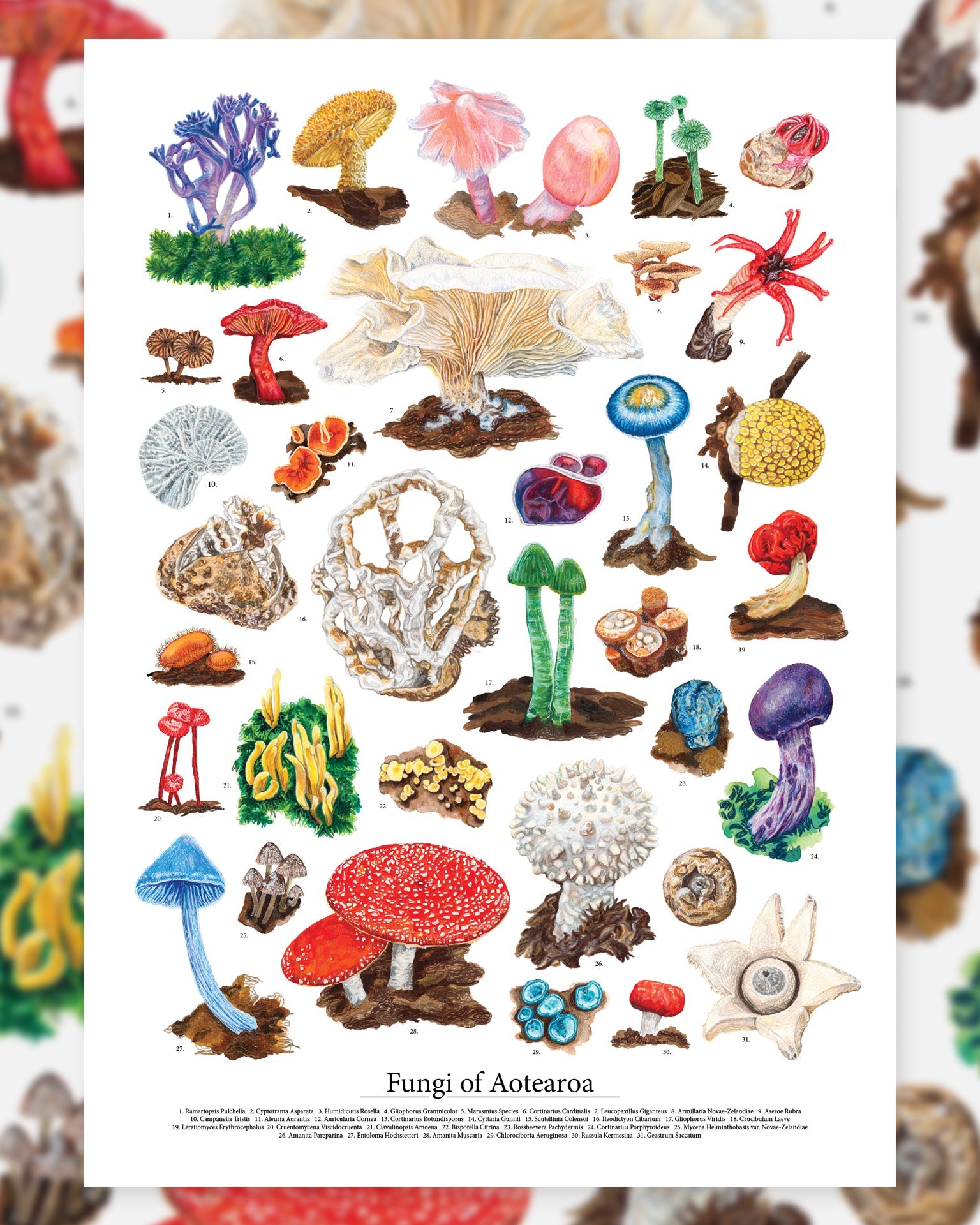 Lara Mumby-Croft: Fungi of Aotearoa Print