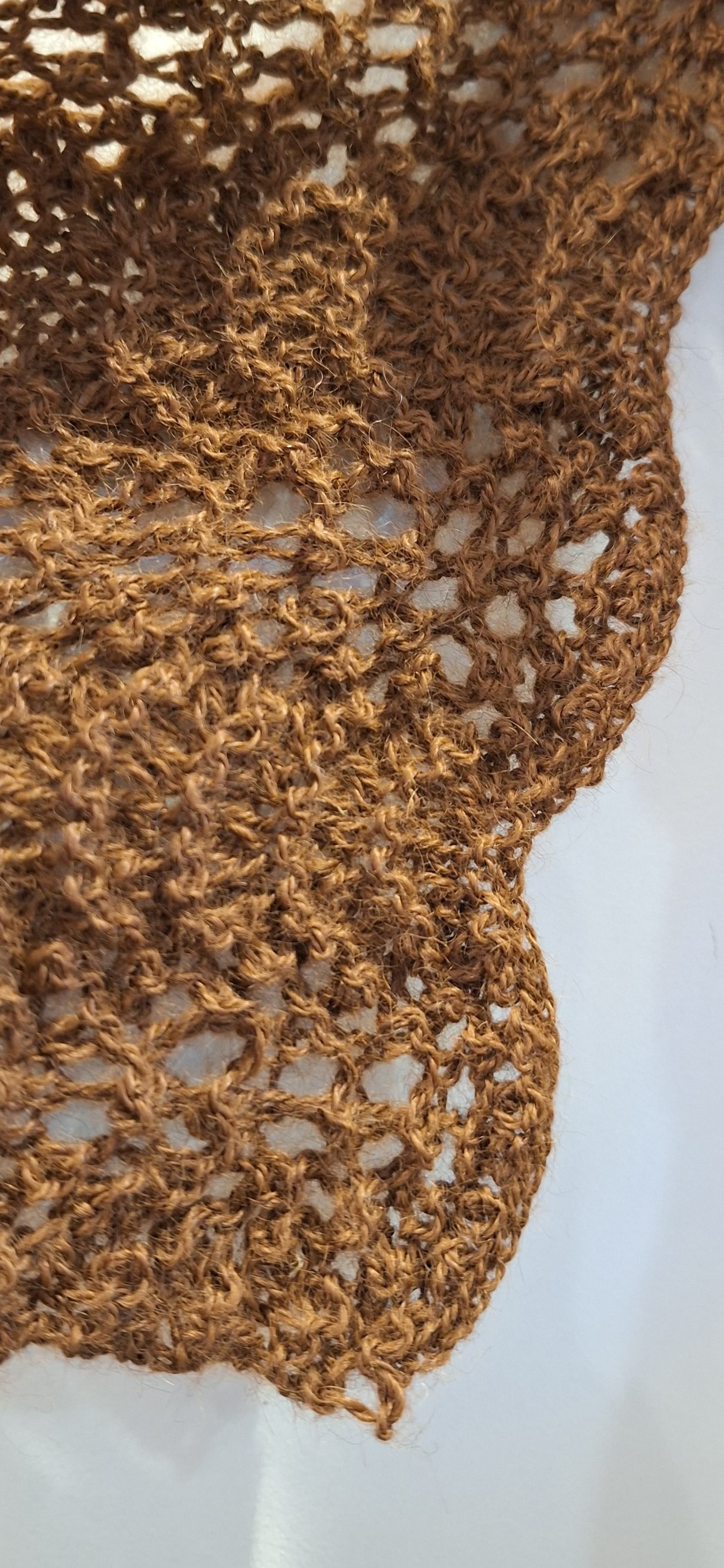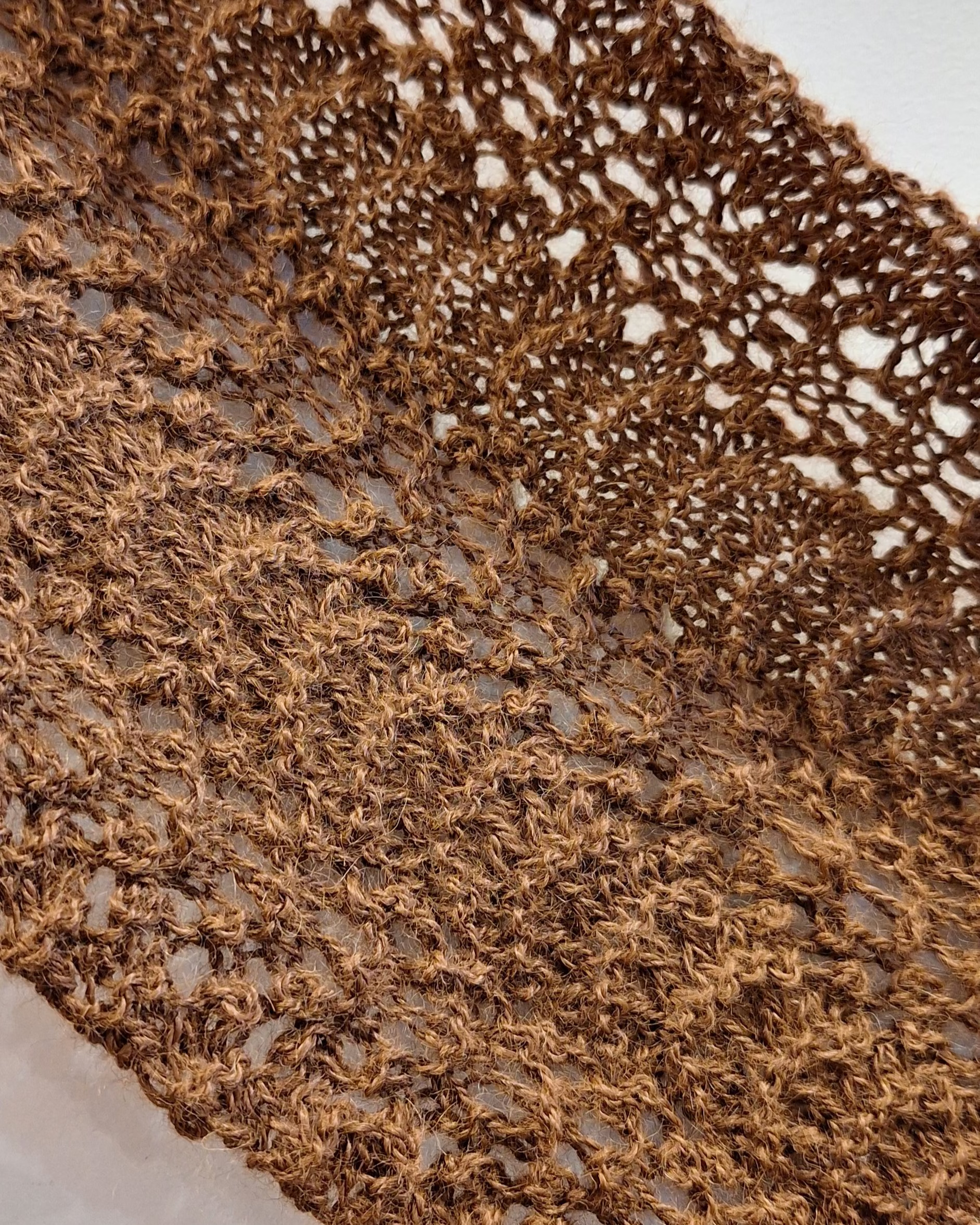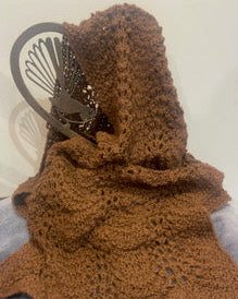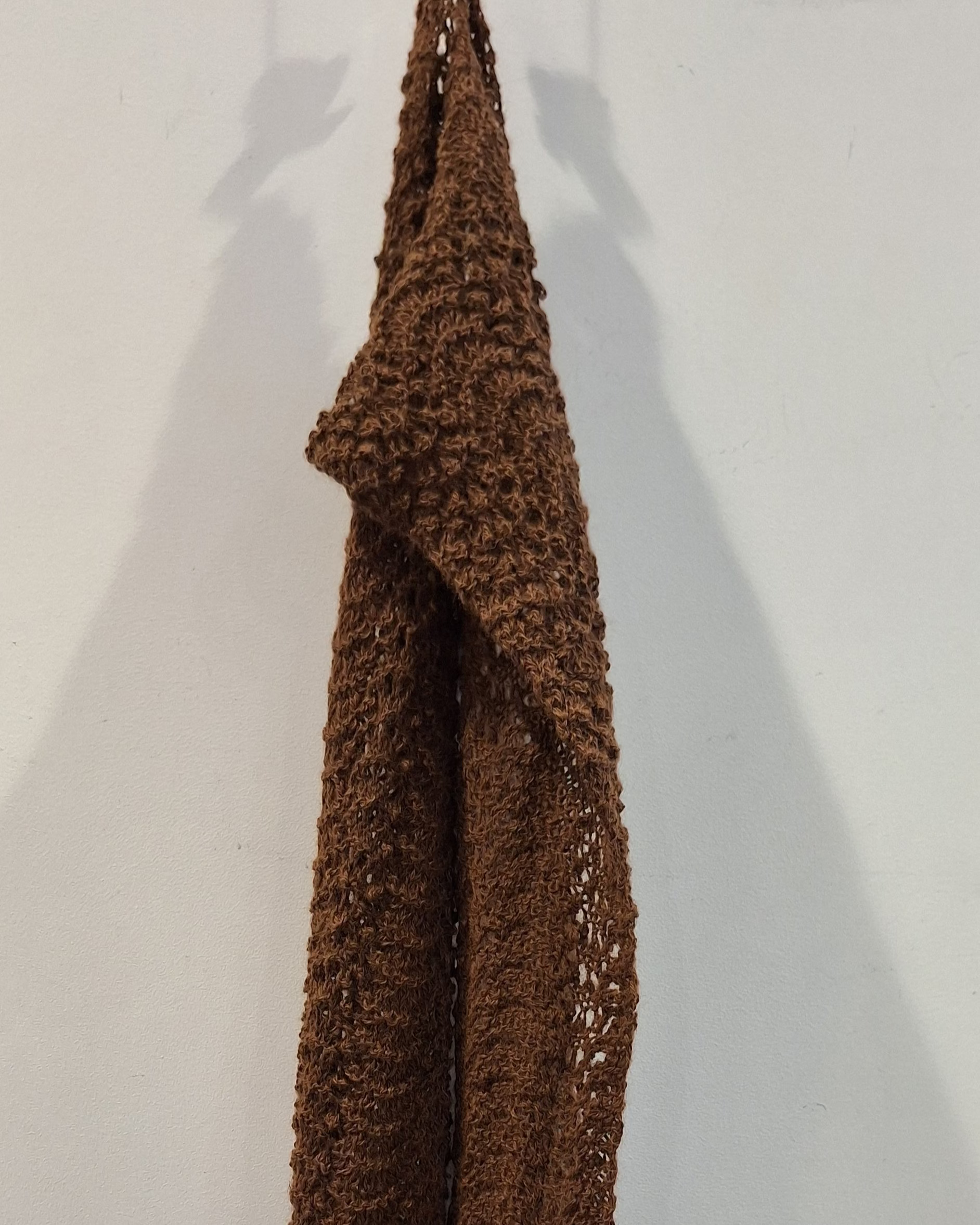 A hand-knitted luxurious scarf, measuring approximately 26 cm W X 1.2 m L. Crafted from 100% Suri Alpaca Natural Colours.